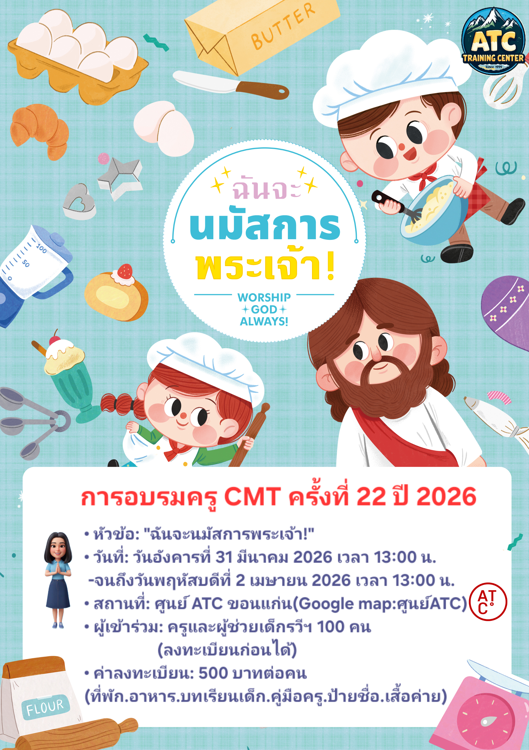 오는 3월 31일부터 4월 2일까지 2박 3일 동안 태국 컨깬 ATC센터(송형관 선교사)에서 제22차 CMT 교사강습회가 개최된다. 이번 강습회는 태국 전역의 교회학교 교사들을 대상으로 진행되며, 어린이들을 성경적으로 양육할 수 있도록 실제적인 교육과 훈련을 제공하는 집중 프로그램이다.