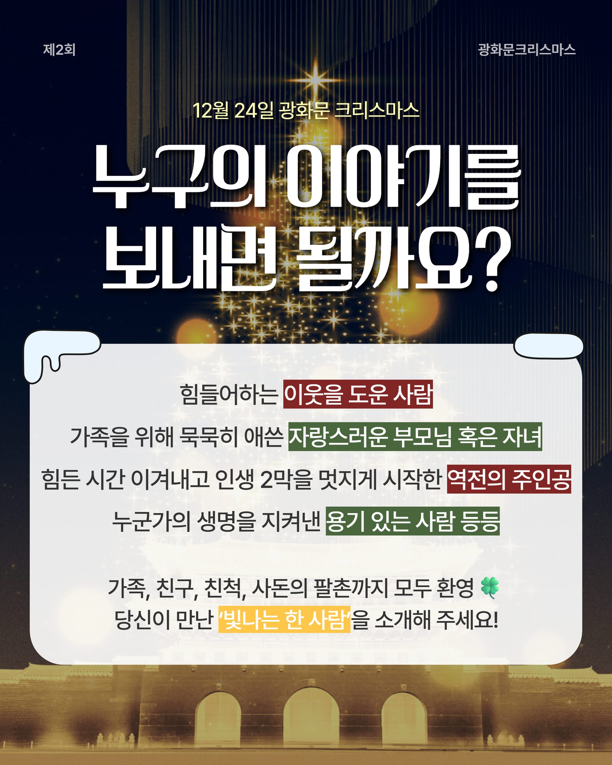 ✨ 제2회 광화문 크리스마스, 빛이 되어준 그 사람을 찾습니다 ✨